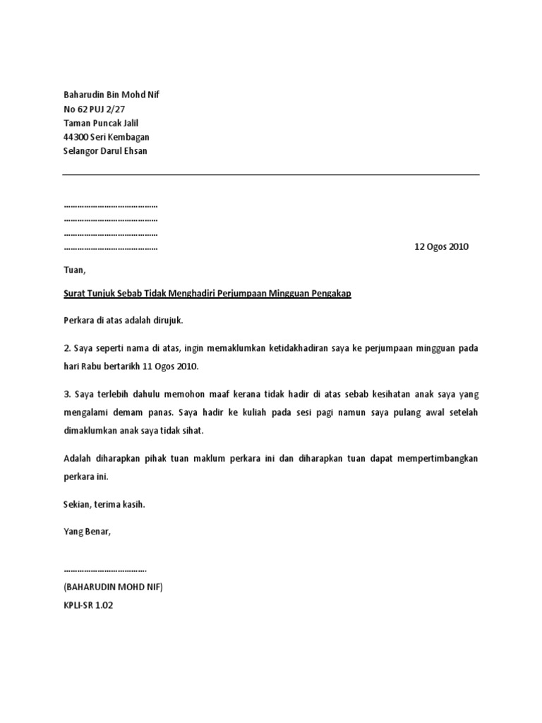Contoh Surat Tunjuk Sebab Tidak Hadir Bekerja Malayvava