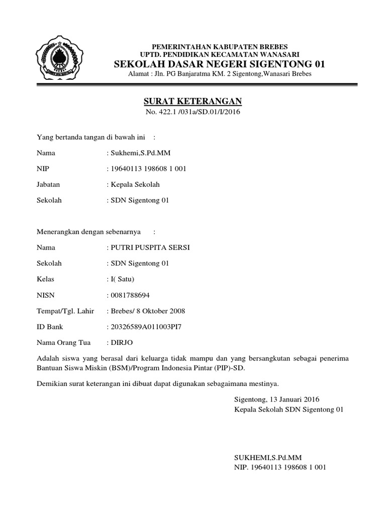 | Lihat Contoh Surat Keterangan Bsm Pip 2016 |
