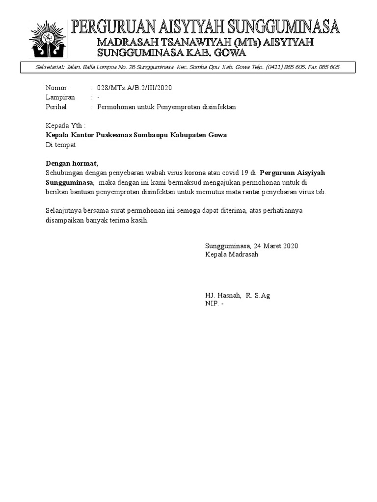 Contoh Surat Permohonan Disinfektan